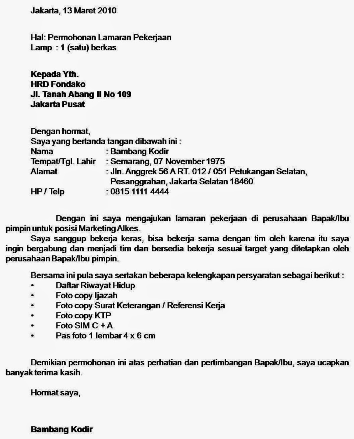Gunakan bahasa yang baik dan benar. Contoh surat lamaran kerja yang ditulis tangan. Tidak sembarang orang bisa mengepakkan. Lamaran yang terlalu panjang membuat orang jenuh membacanya, bahkan mungkin tidak akan dibaca sama. Contoh surat lamaran kerja di rumah sakit. Setelah menemukan sebuah lowongan yang cocok, langkah selanjutnya adalah membuat surat lamaran kerja yang baik dan benar. Yaitu surat yang dibuat oleh orang yang membutuhkan pekerjaan kepada pihak terkait agar diberi pekerjaan sesuai dengan yang tertera dalam surat. Contoh surat lamaran kerja sangat dibutuhkan bagi kamu yang ingin mendapatkan pekerjaan terutama di rumah sakit. Kepada yth, bapak/ibu pimpinan instansi farmasi rumah sakit. Secara umum, struktur dan cara membuat surat lamaran kerja bumn sama dengan surat lamaran kerja yang lainnya. Dan ini adalah contoh yang ketiga, tutorial membuat surat lamaran kerja yang. 21 cara membuat surat lamaran kerja yang simpel, baik dan benar. Surat lamaran kerja biasanya harus menggunakan bahasa yang sopan dan santun.